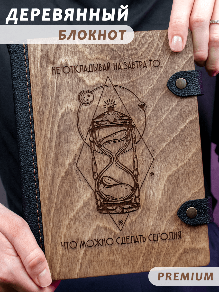 Деревянный блокнот WoodlyBY с кожаным переплетом "Песочные часы"