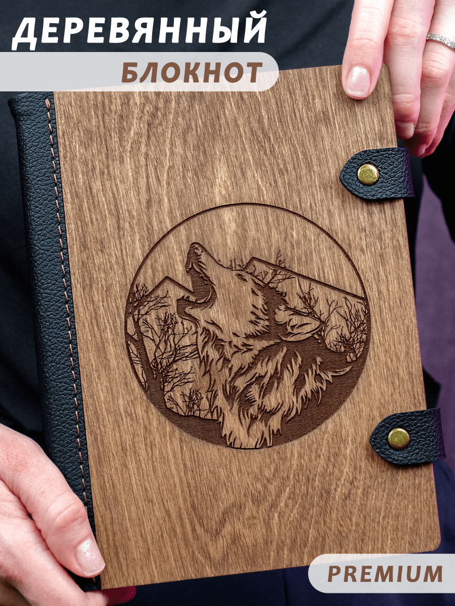 Деревянный блокнот WoodlyBY с кожаным переплетом "Волк"