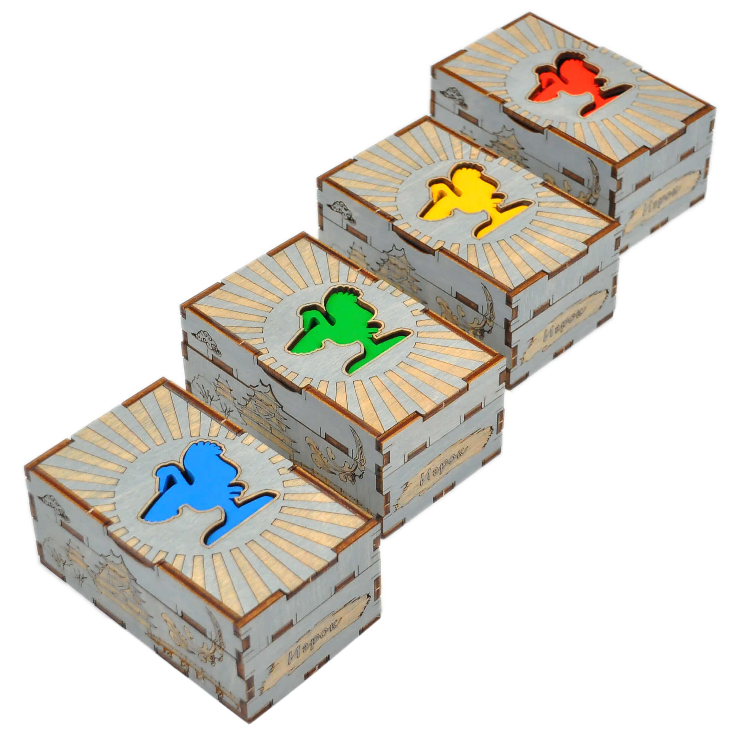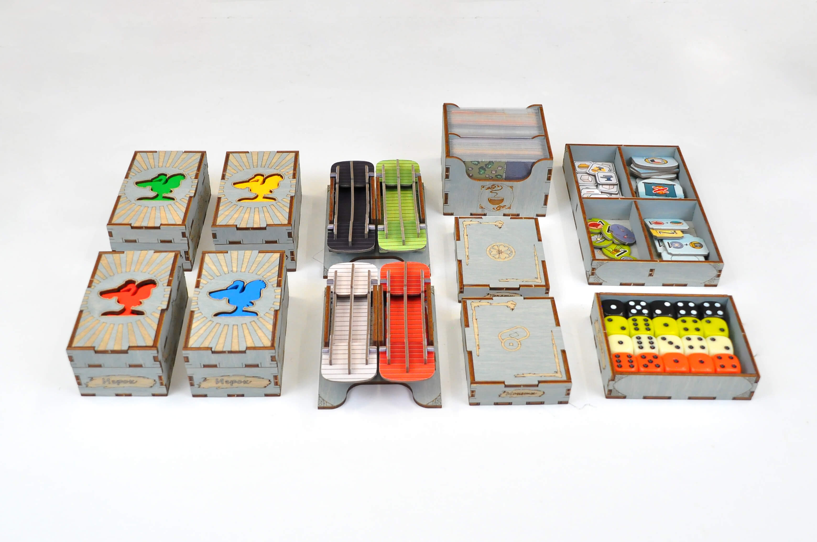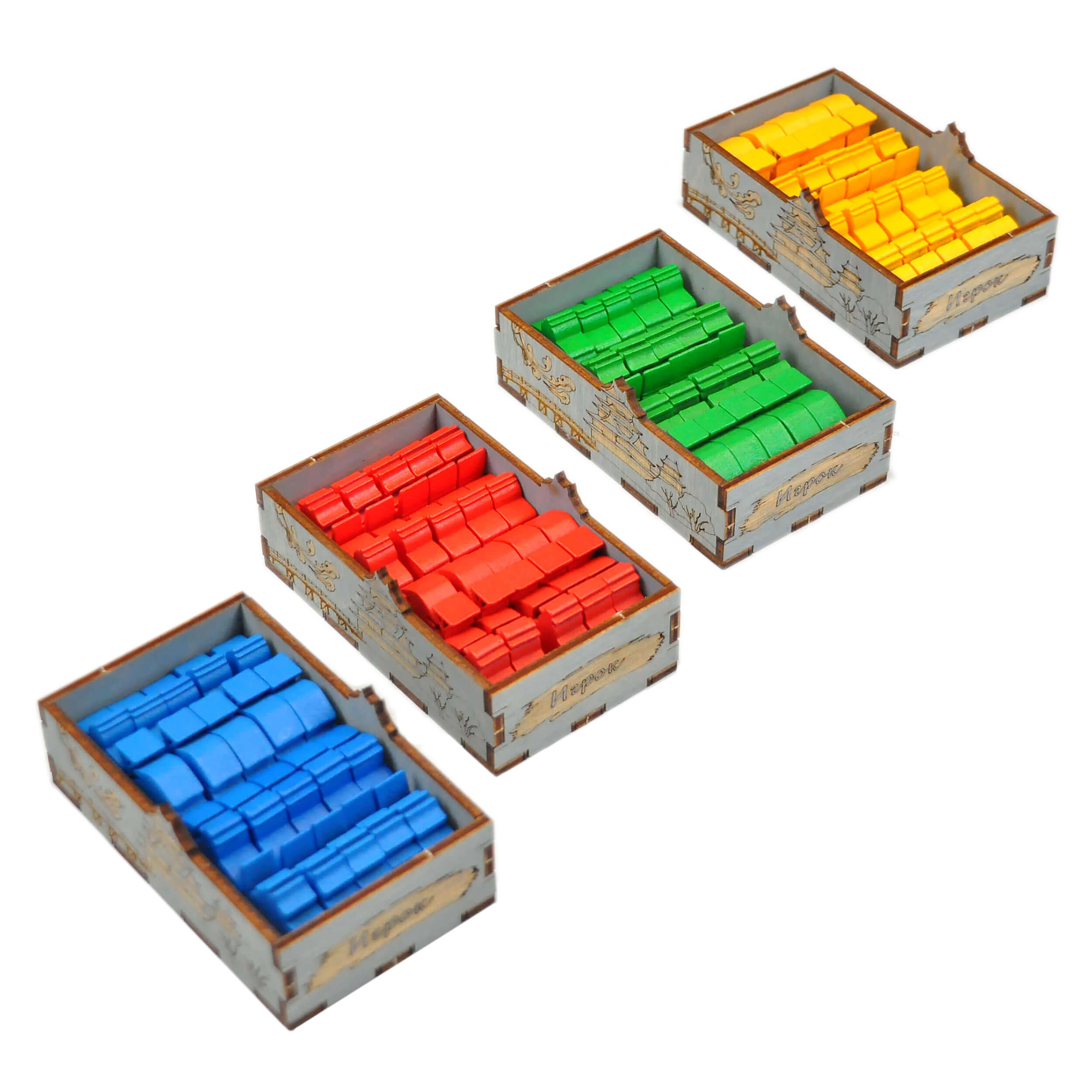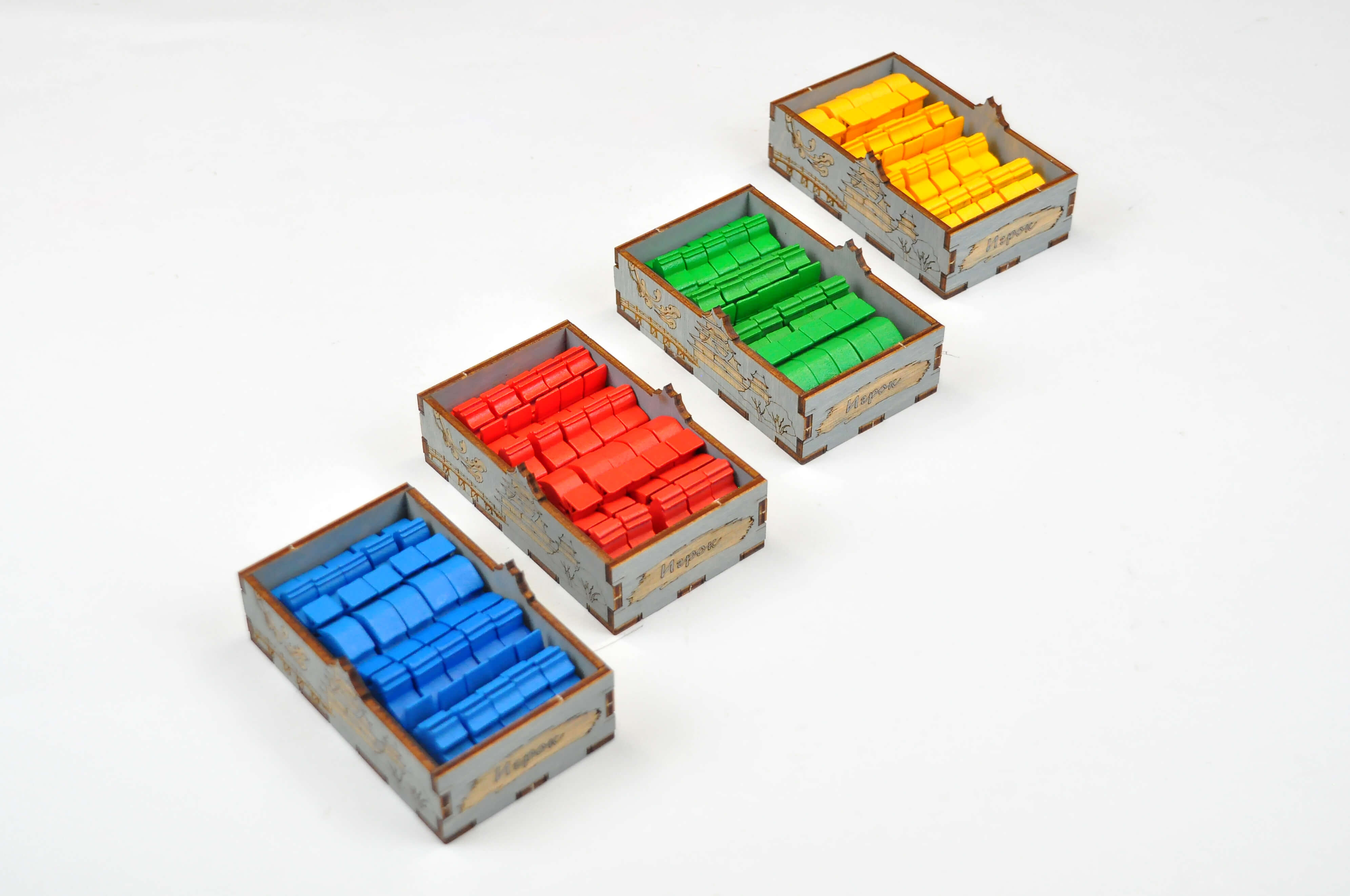 - 4 сдвоенные коробки игрока с личными компонентами(8 элементов);