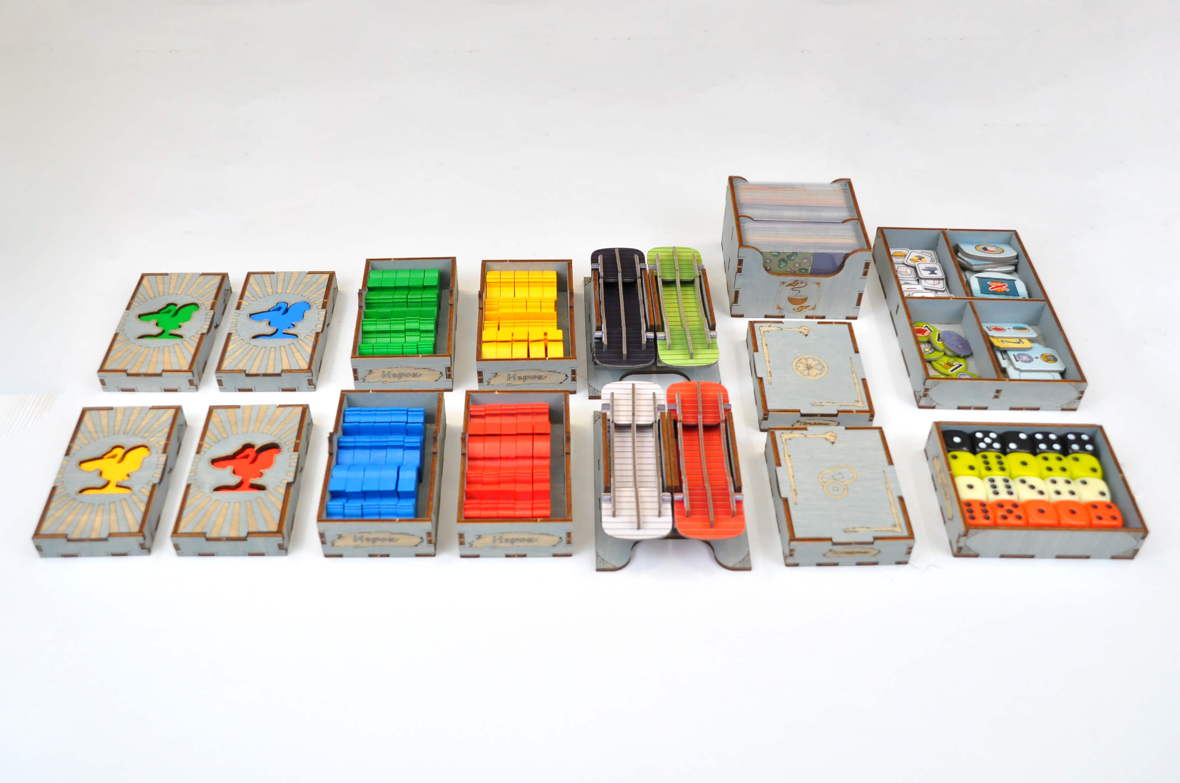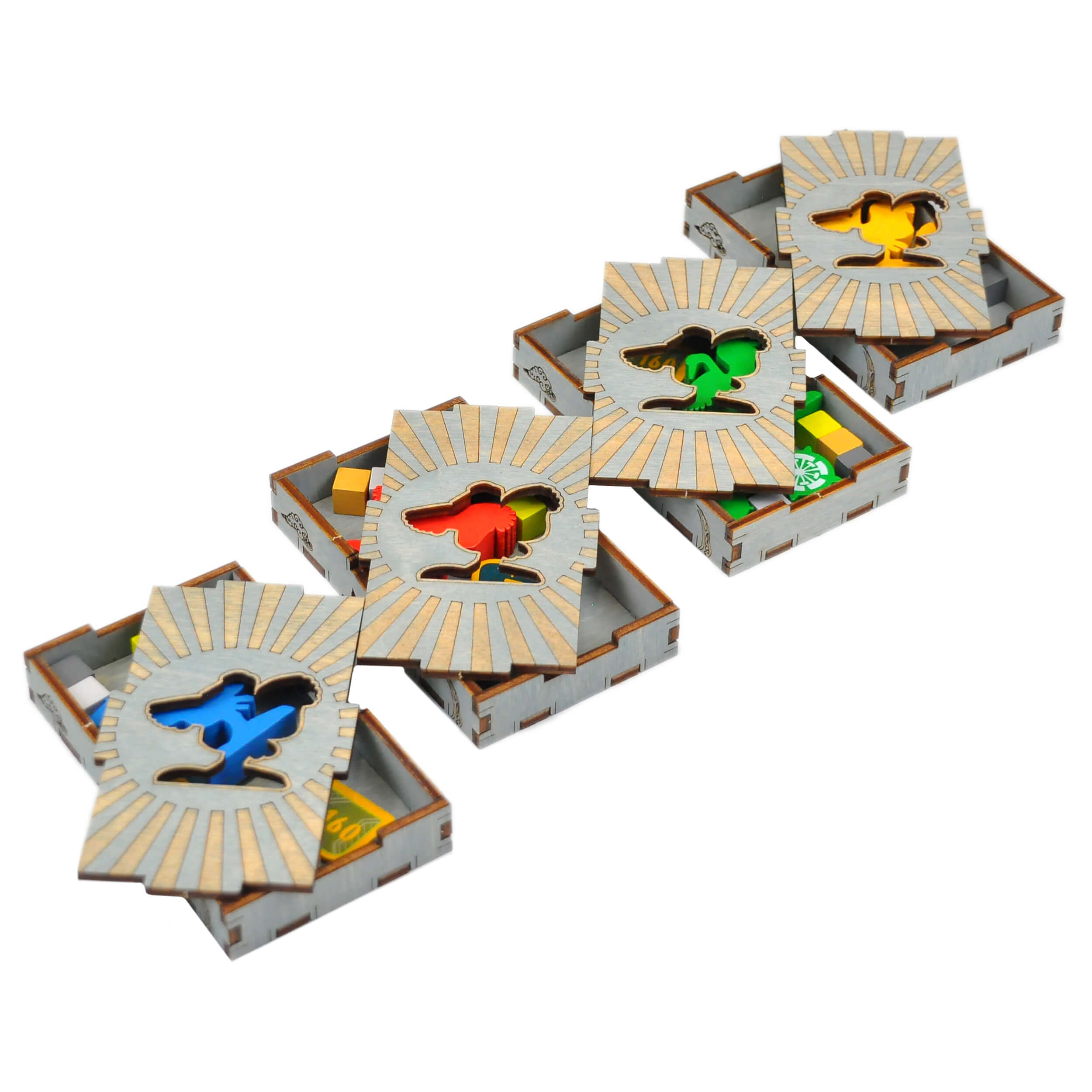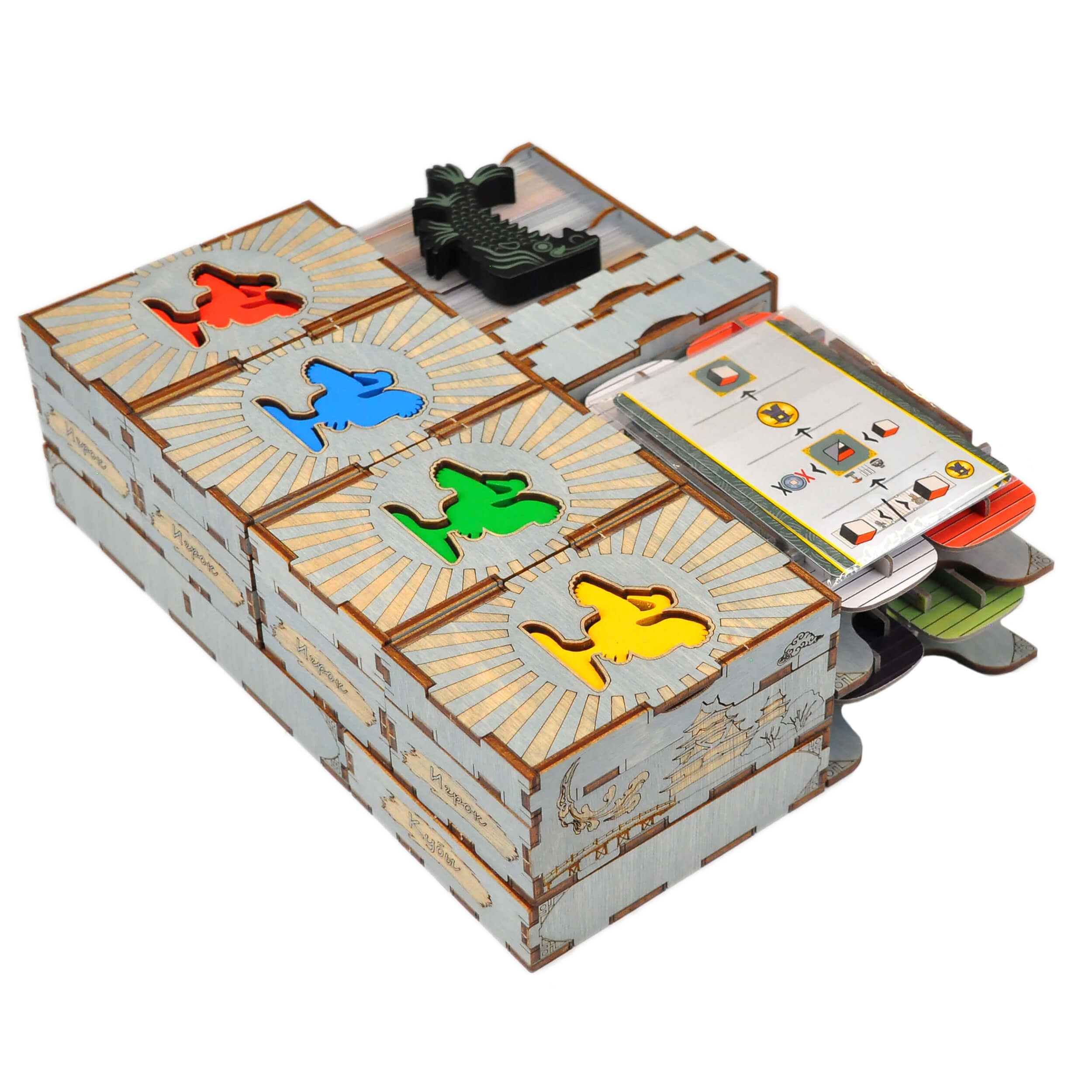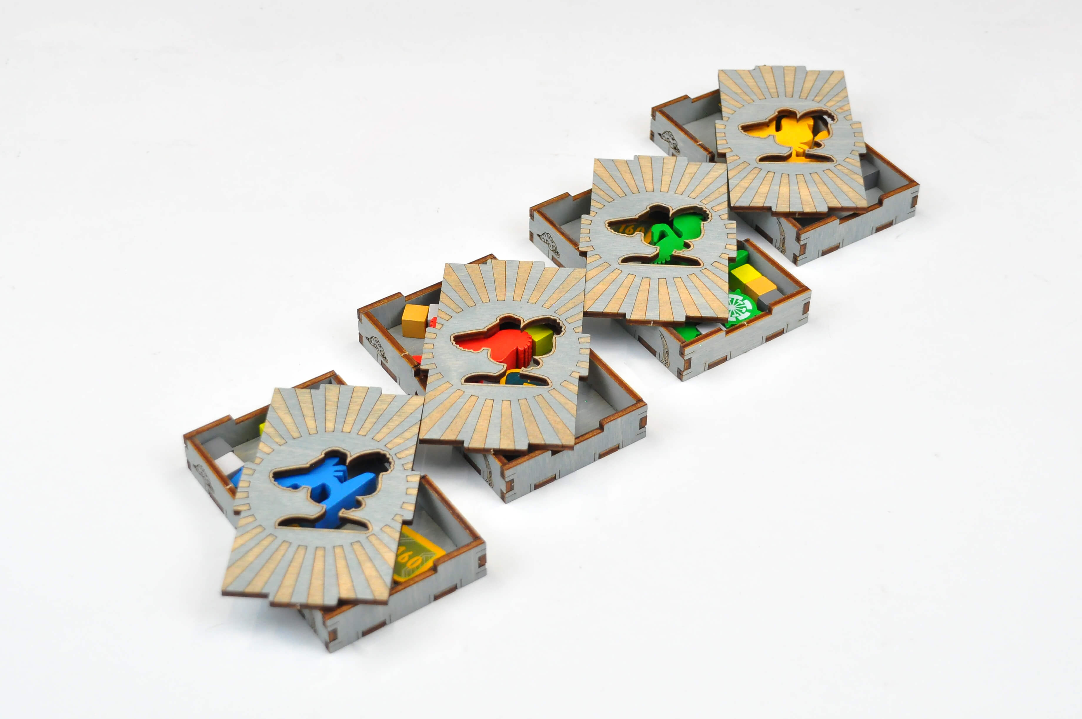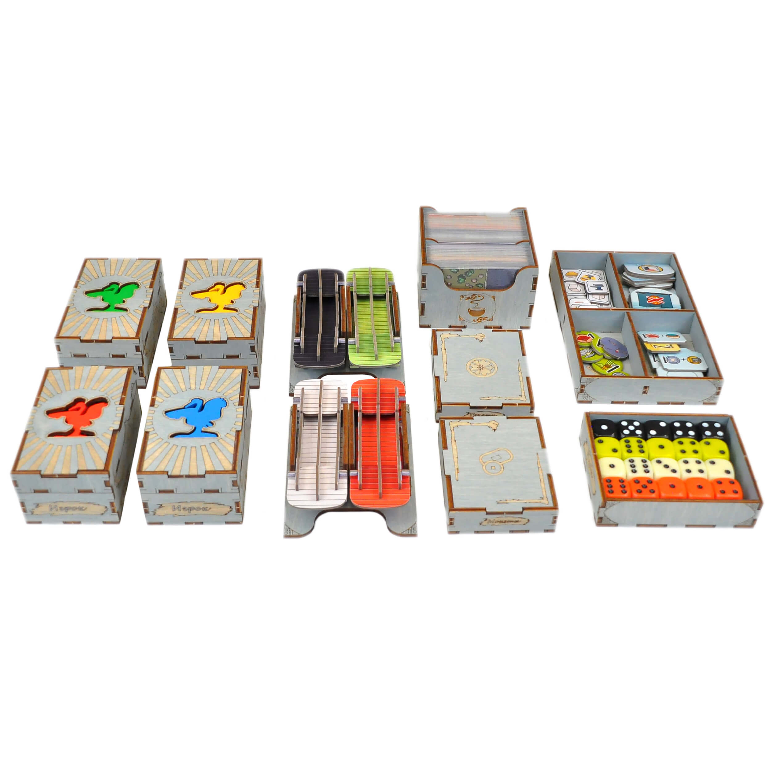 - 4 сдвоенные коробки игрока с личными компонентами(8 элементов);