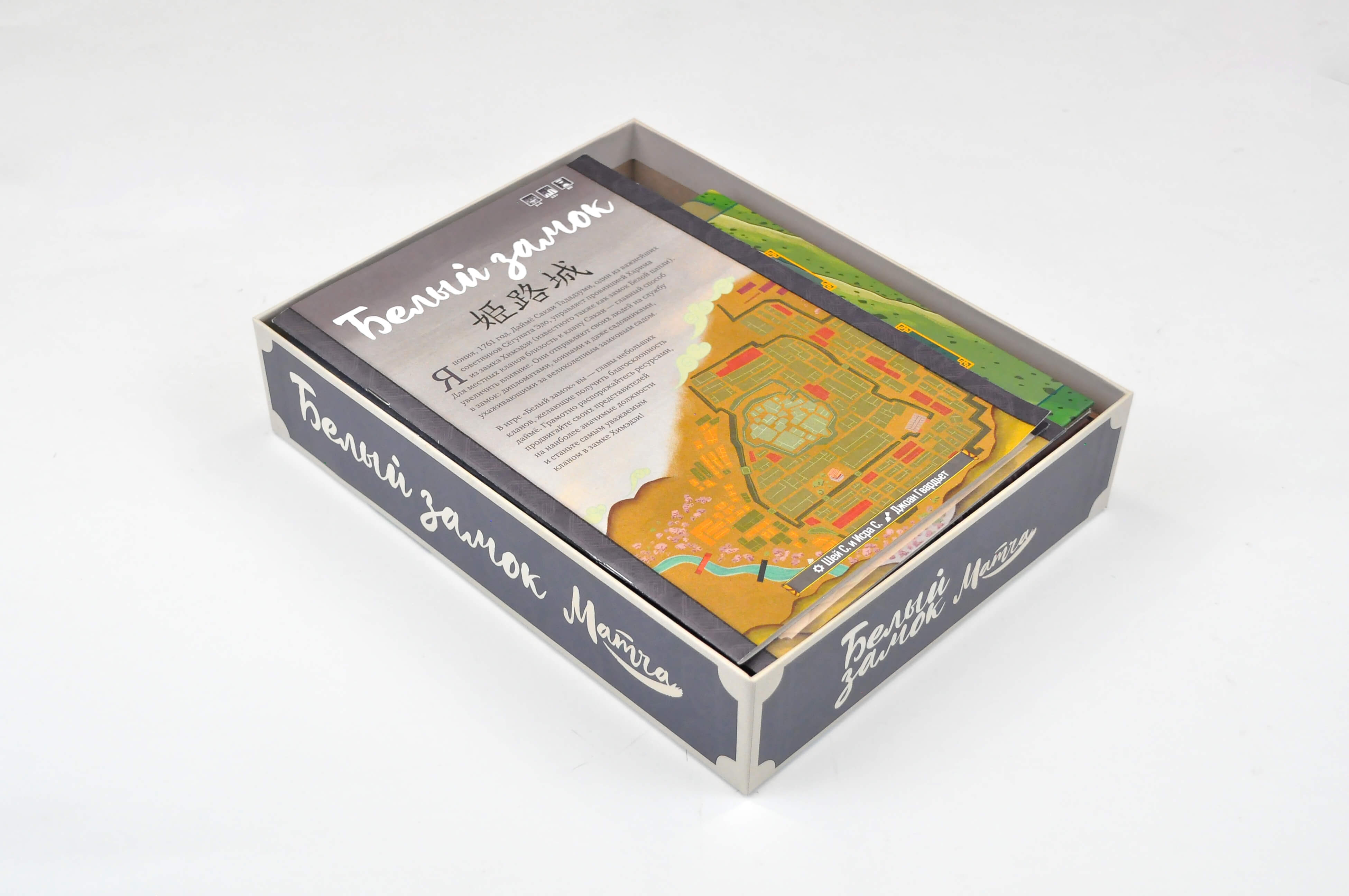 Белый Замок переносит нас в феодальную Японию ко двору знатного даймё. Каждый из игроков возьмёт на себя роль главы клана и будет делать всё возможное, чтобы добиться внимания при дворе и стать правой рукой правителя. Каждый раунд представители вашего клана будут отправляться в Химедзи, чтобы поучаствовать в защите крепостных стен, поухаживать за роскошными садами или предстать перед знатью в Зале Тысячи Ковров.