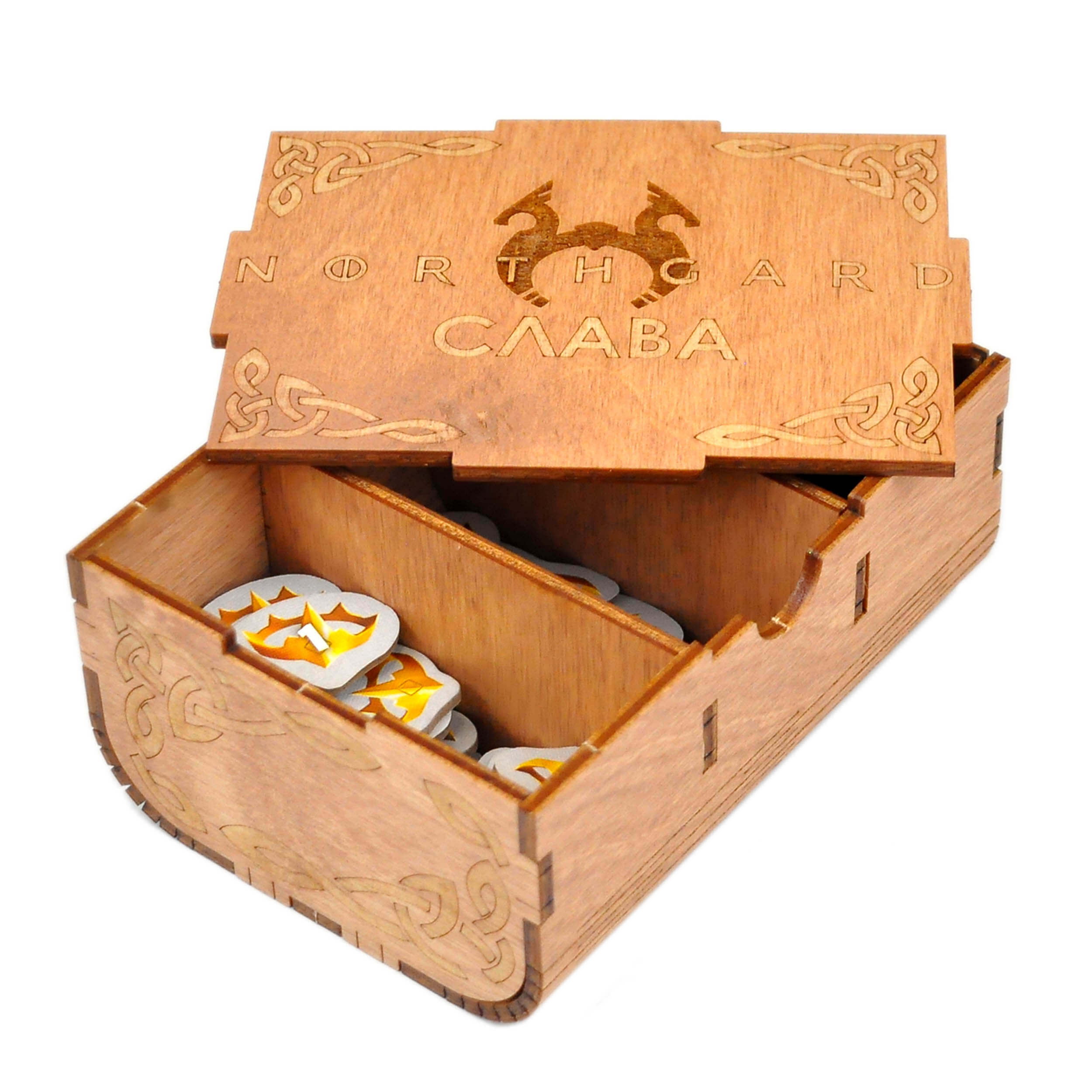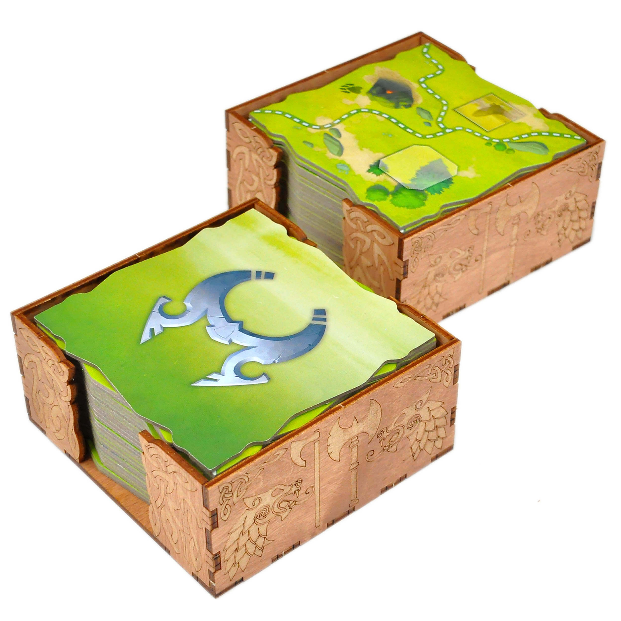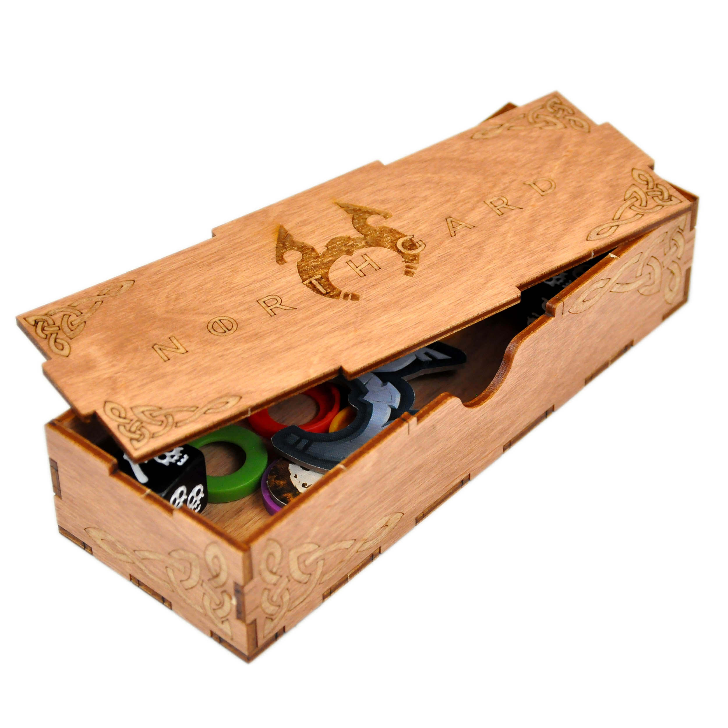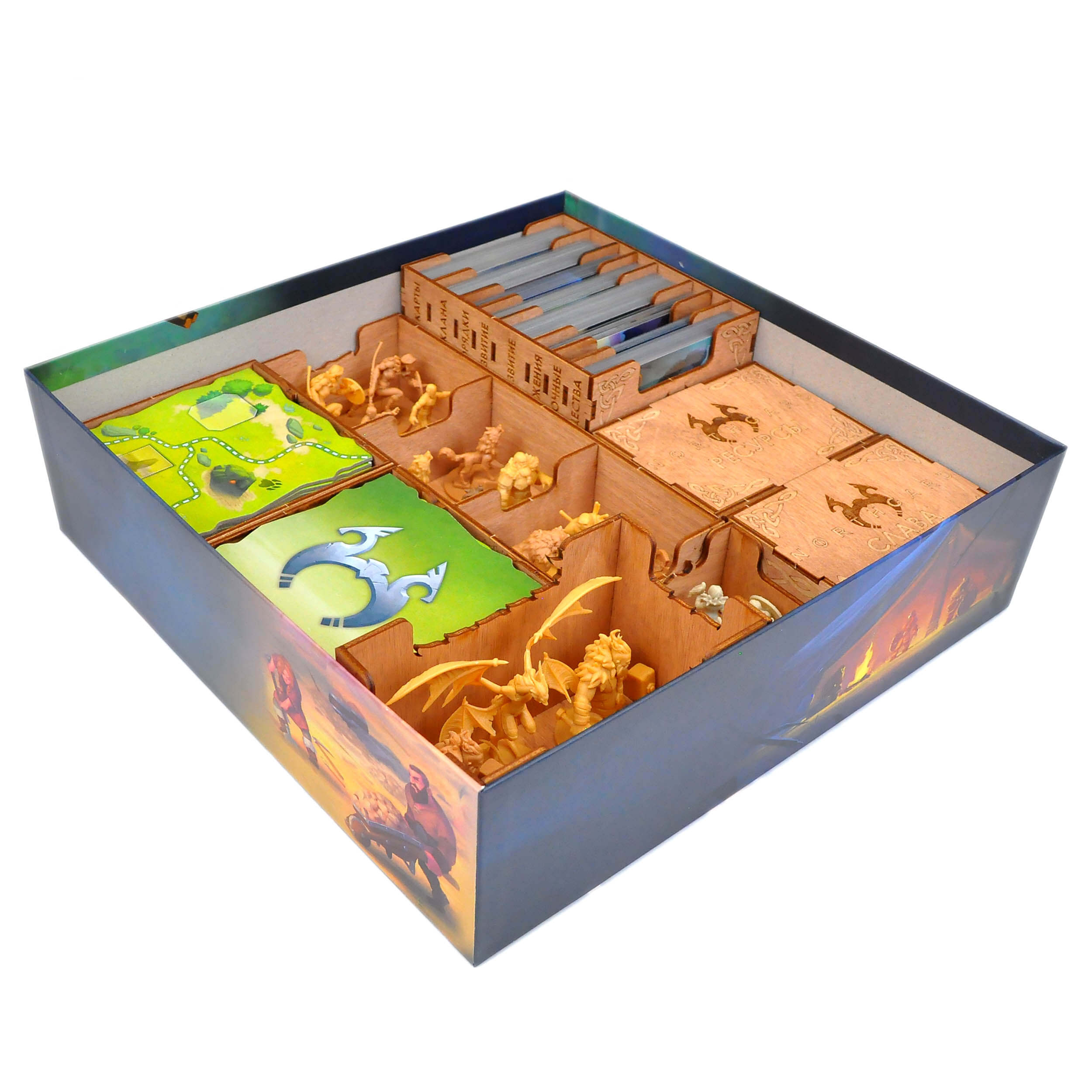 Органайзер для настольной игры Норсгард совмещает базовую игру, все вышедшие дополнения и промо материалы;