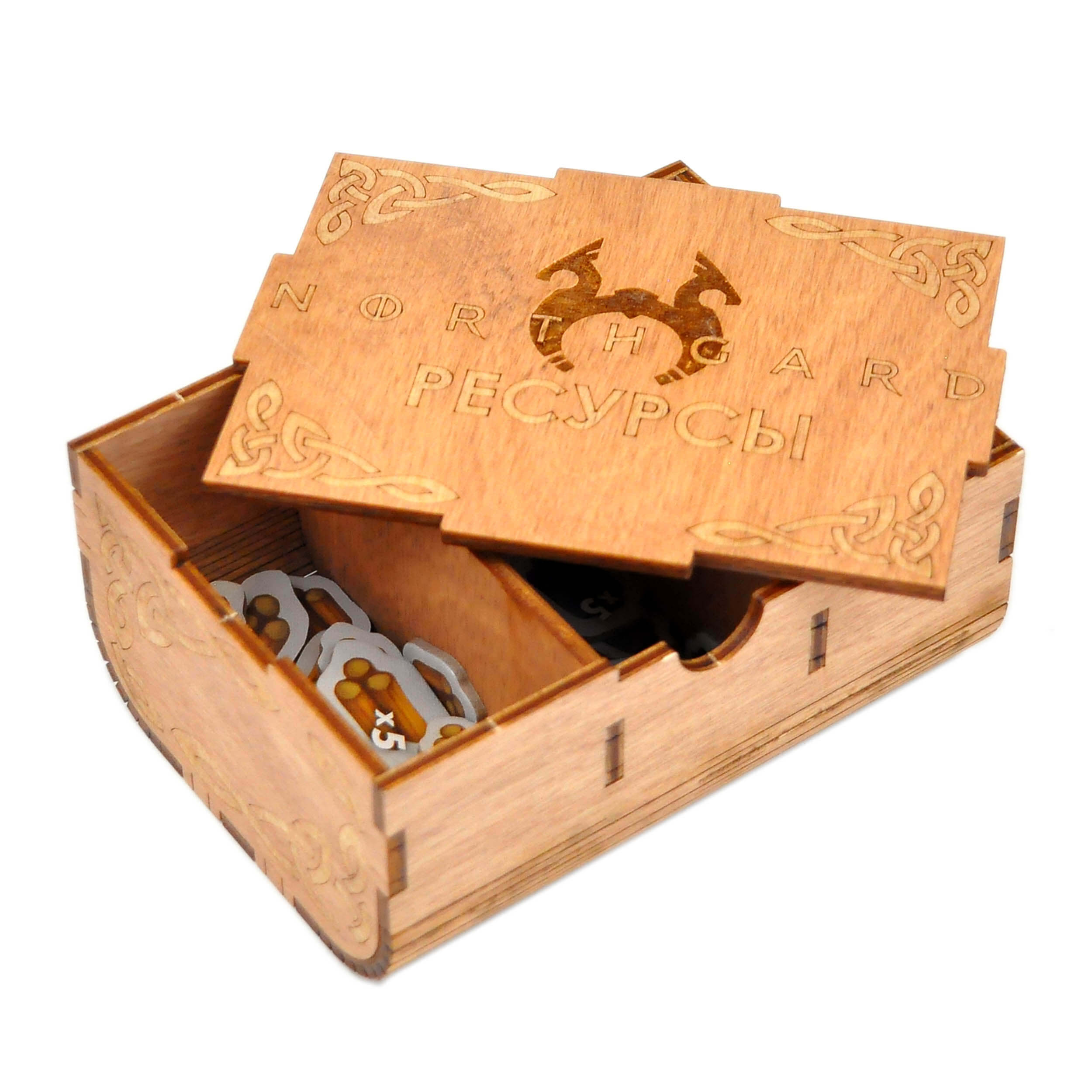 - 3 коробочки для жетонов ресурсов, славы и пр;