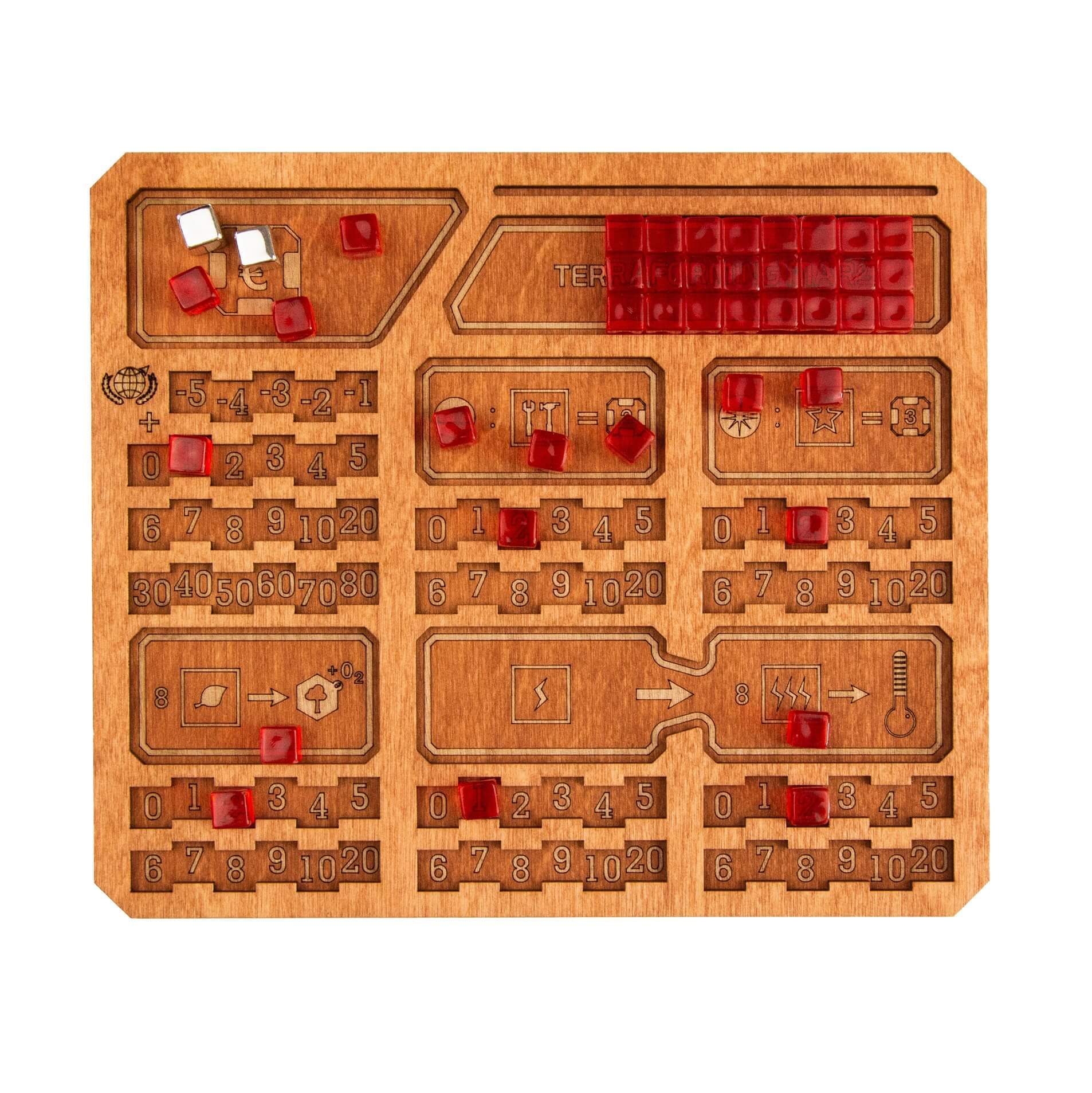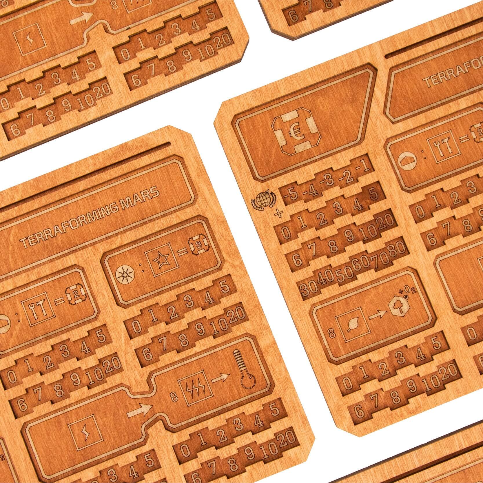 5 планшетов игроков, предназначенных для удобства управления ресурсами вашей корпорации;